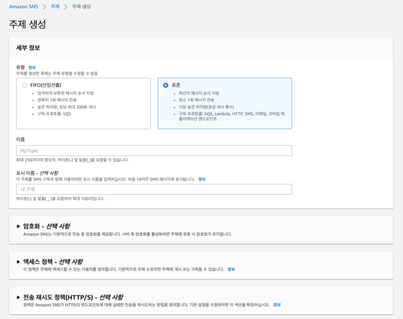 그리고 주제에 구독으로 아까 만든 람다의 ARN을 붙여준다.