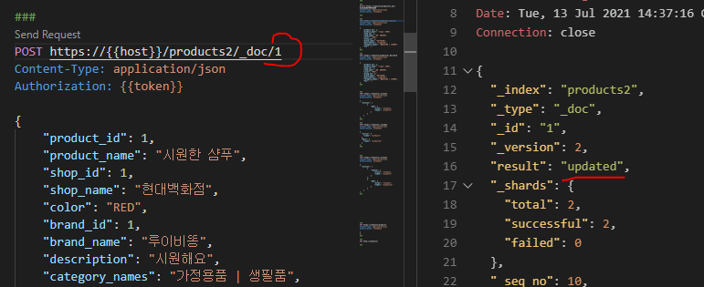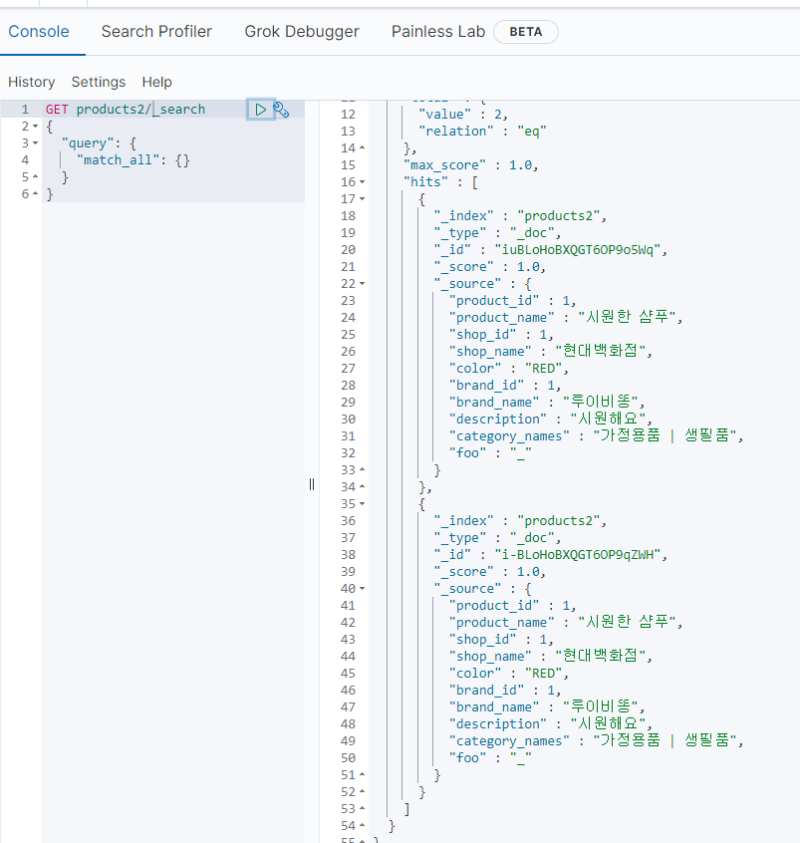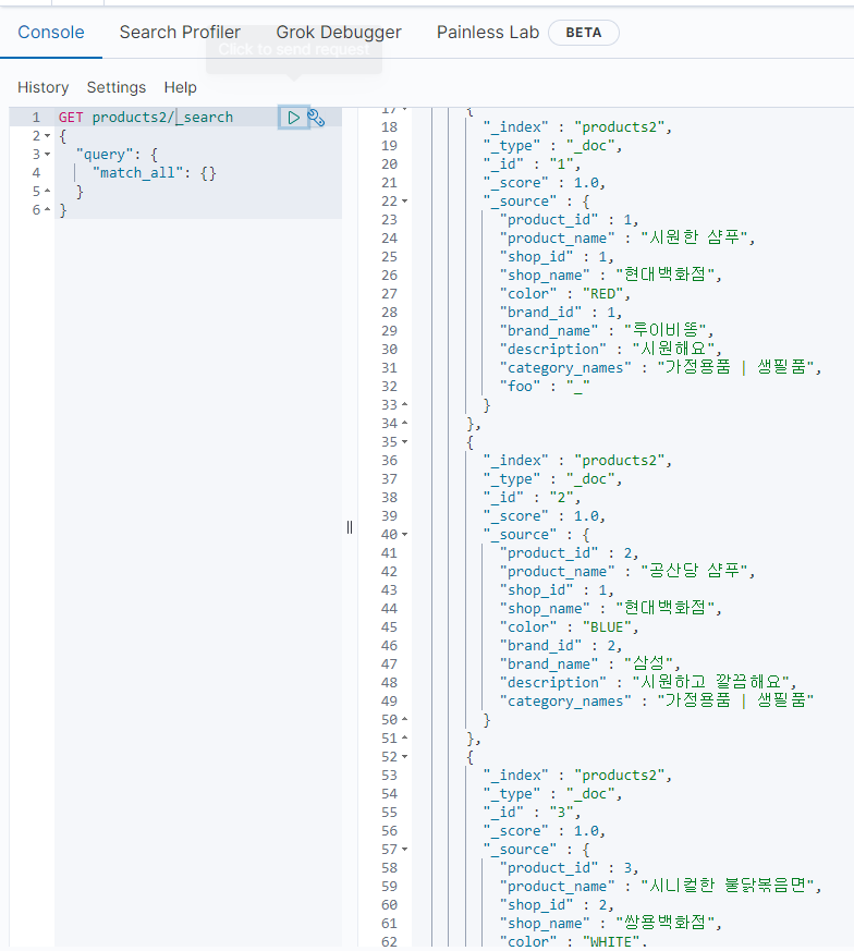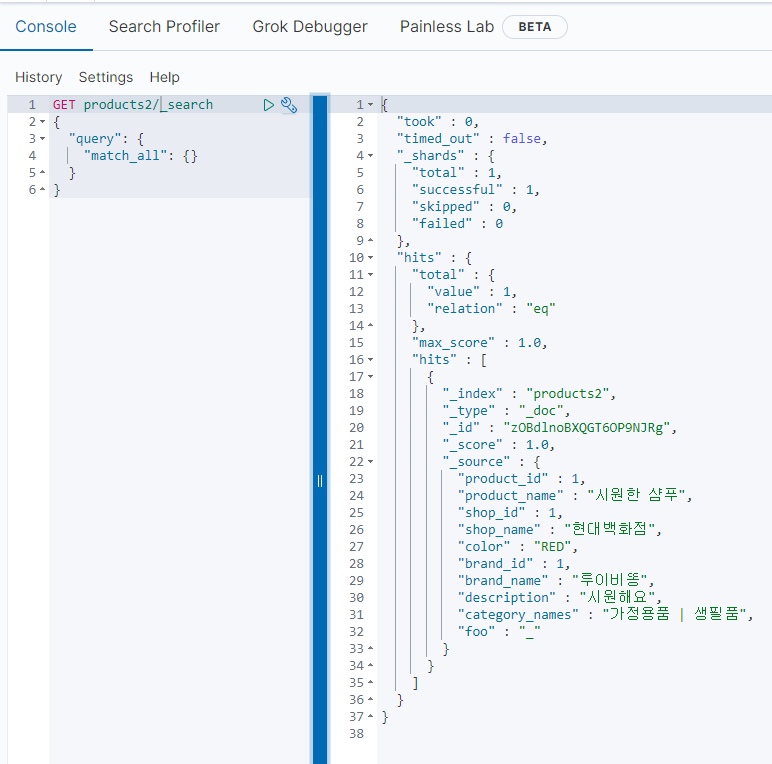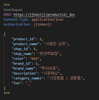 "POST /_doc"에 매핑에 정의된대로 데이터를 집어넣으면 된다.