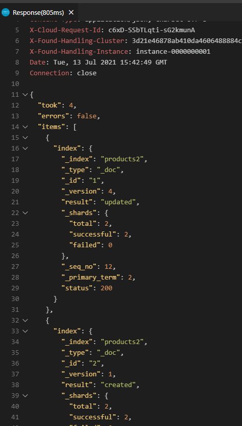 대량삽입을 하려면 "POST /인덱스명/_bulk" API를 사용하면 된다.