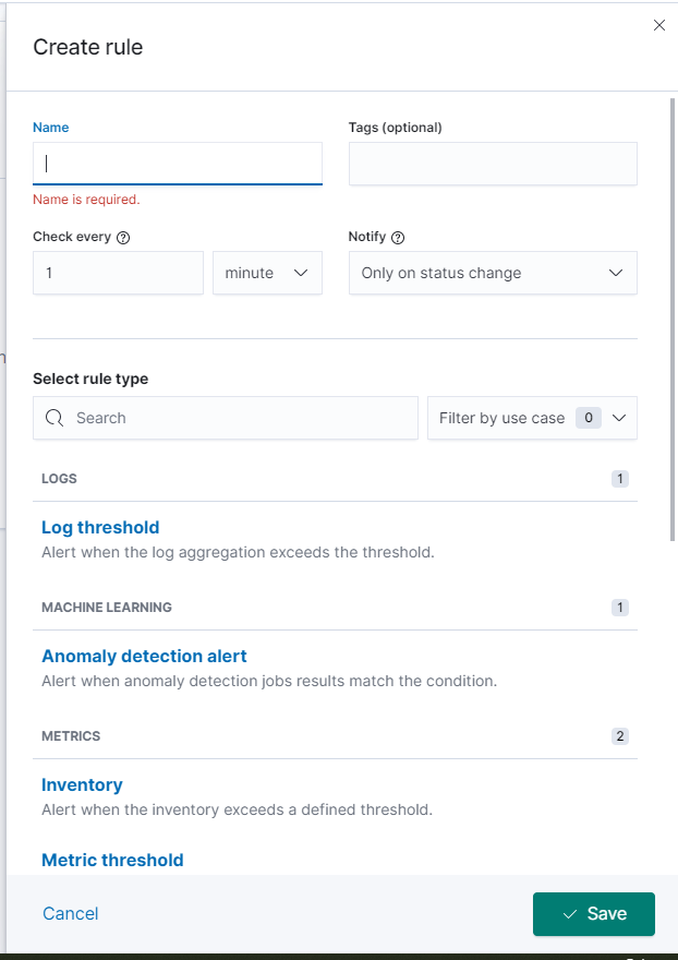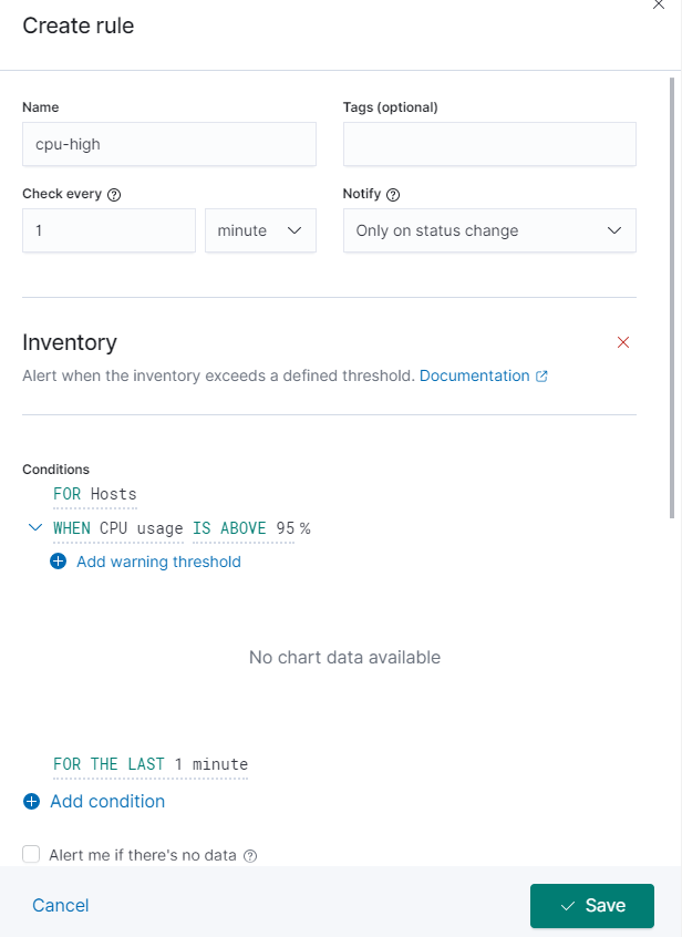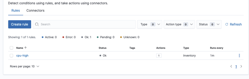 그러면 경보에 대한 규칙을 생성할 수 있다.