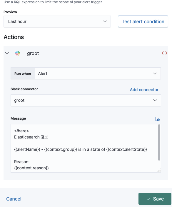 엘라스틱서치가 불안정할 경우 슬랙으로 알림을 보낼 수 있게 설정을 해보겠다.
