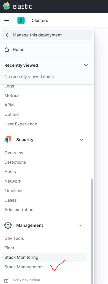 키바나 페이지에서 스택 매니지먼트로 들어간다.