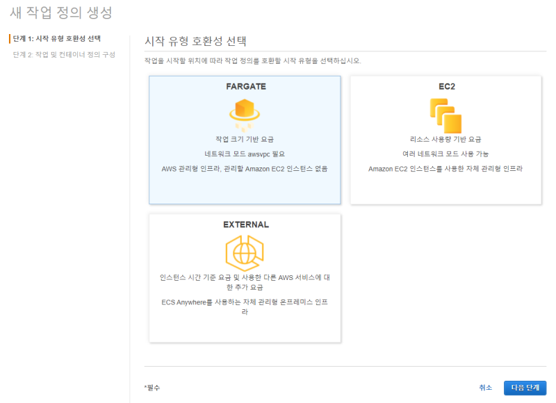 호환성은 Fargate를 선택한다.