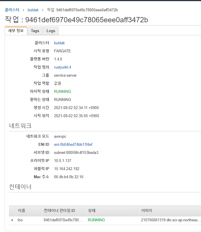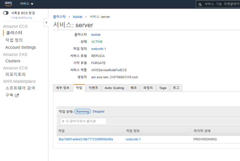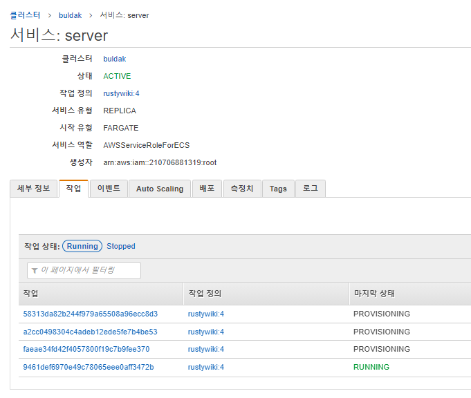 서비스 하나에는 여러개의 작업 컨테이너가 들어갈 수 있고, 그 작업의 동작은 등록한 작업 정의를 따른다.