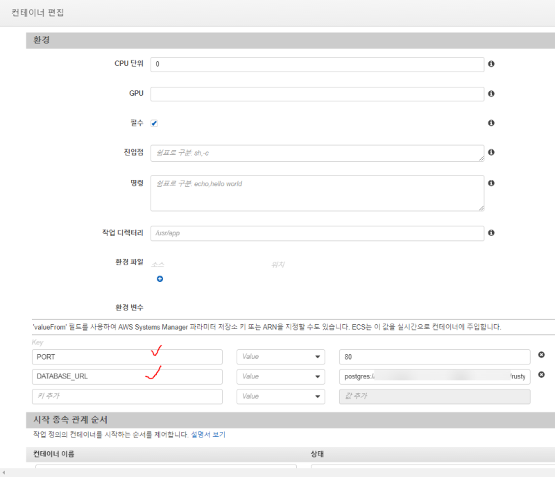 그리고 환경변수도 필요한 만큼 넣어주자