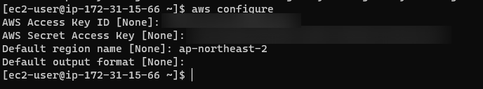 그리고 aws cli의 configure 명령으로 로그인을 한다.