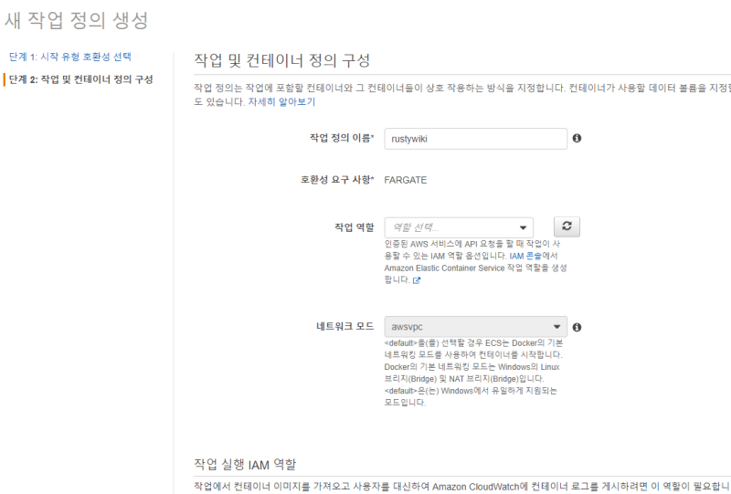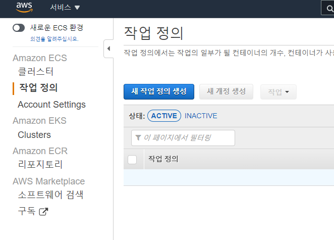 새 작업 정의 생성에 들어가