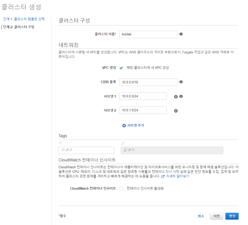 ECS: 클러스터 생성