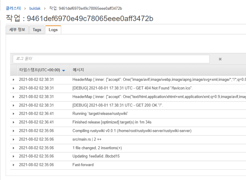 로그탭을 열면 로그도 볼 수 있다.