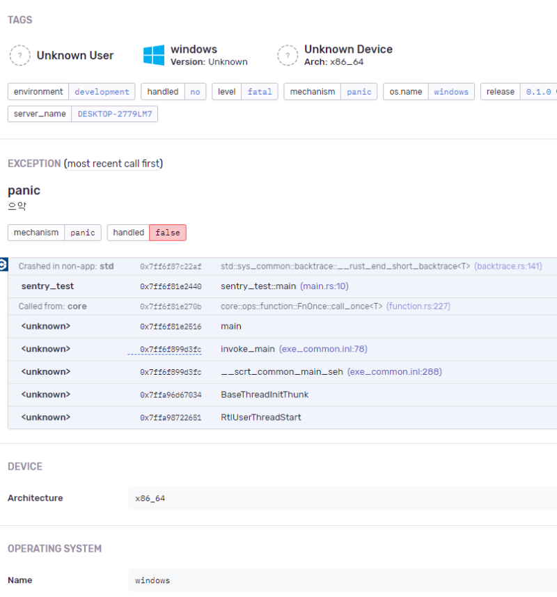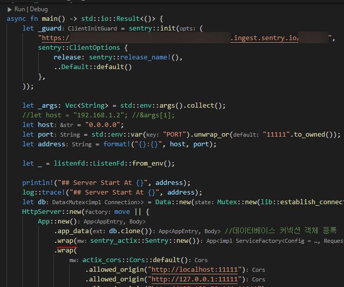 참으로 기분좋게도 sentry에서 actix-web까지 지원을 하더라.