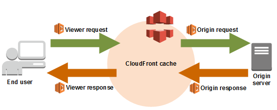 CloudFront๋ ์๋ ์๋์ ๊ฐ์ ๊ตฌ์กฐ๋ก, ์ค๊ฐ์์ ์บ์ฑ๋ง์ ํด์ฃผ๋ ์๋น์ค์ธ๋ฐ,