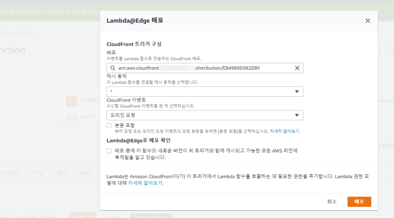 ๊ทธ๋์ ํจ์๋ฅผ ์์ฑํ๋ฉด ์ต์ด ์ง์ ์์ cloudfront ํธ๋ฆฌ๊ฑฐ๋ฅผ ๋ง๋ค๋ผ๊ณ ๋ฌ๋ค.