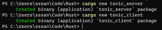 우선 cargo 커맨드로 서버와 클라이언트 프로젝트를 하나씩 만들어준다.