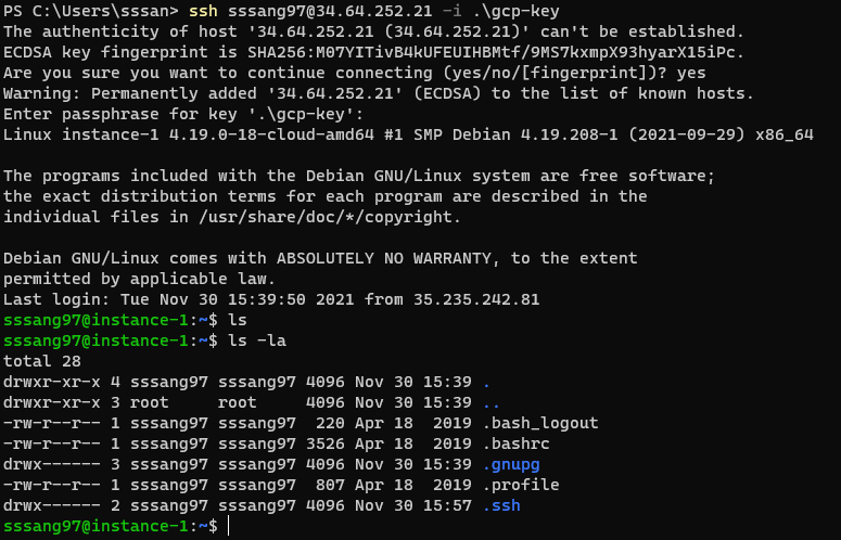 ssh ์์ด๋@์ธ๋ถIP -i ๋น๋ฐํคํ์ผ