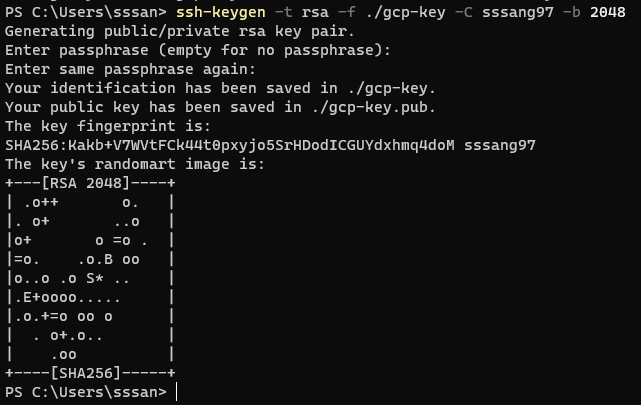 ์๋์ ๊ฐ์ด ssh ํค๋ฅผ ๋จผ์ ์์ฑํ๋ค.