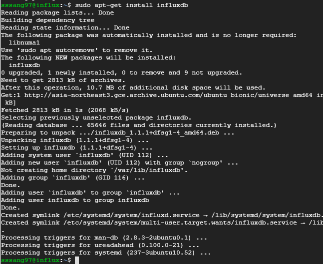 sudo apt install influxdb