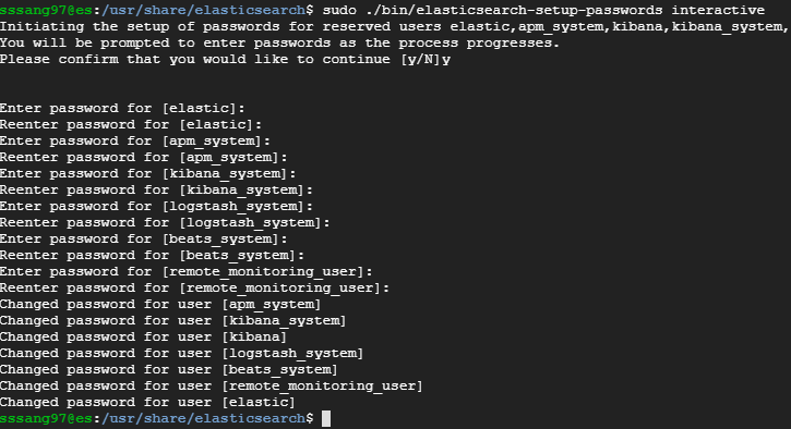 sudo ./bin/elasticsearch-setup-passwords interactive