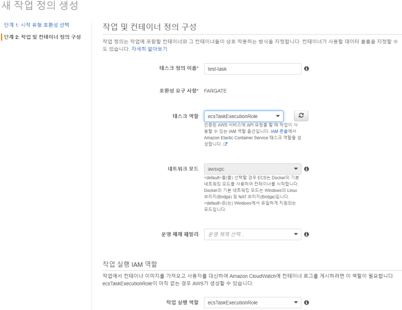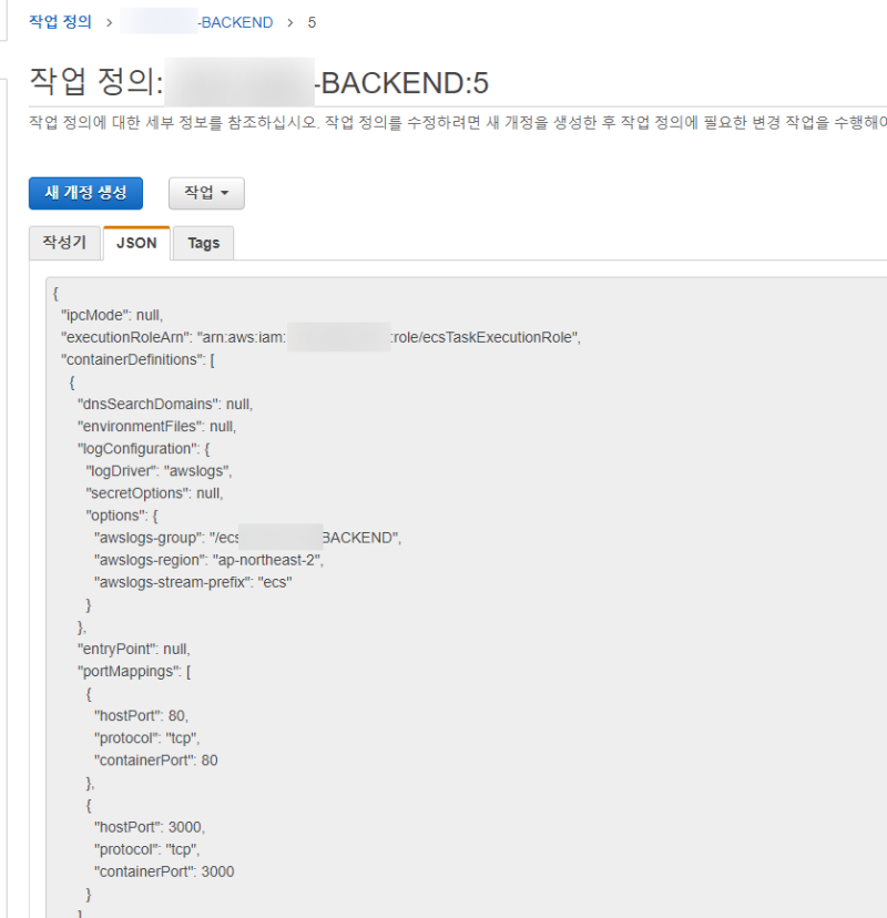 그리고 저기서 task-definition.json 파일은 직접 작성해도 되긴 하는데, 이미 만들어둔거 긁어오는게 편하다.