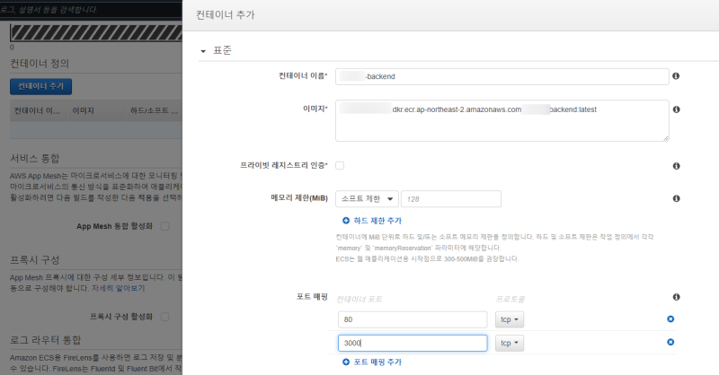 컨테이너에 방금 만들었던 배포용 이미지를 지정해주고, 포트 매핑까지 해주면, 끝이다.
