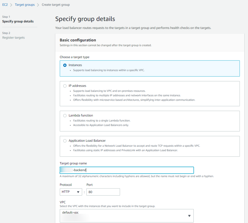 서비스를 만들기 전에 로드밸런서부터 만들어둬야 하는데, 로드밸런서를 만들려면 대상그룹부터 만들어야 한다.