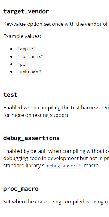 https://doc.rust-lang.org/reference/conditional-compilation.html
