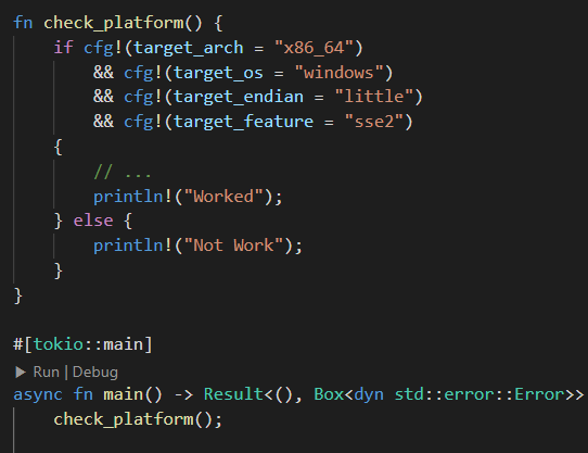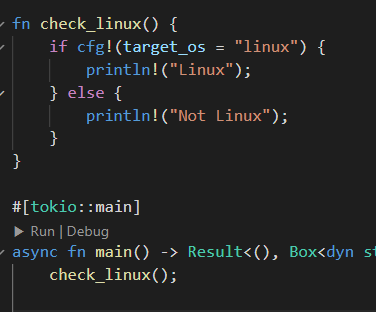 가령, 함수 위에 cfg 매크로를 어트리뷰트의 형태로 붙인다면, 조건에 부합하지 않는 것들은 컴파일에서 아예 제외처리가 되어버린다.