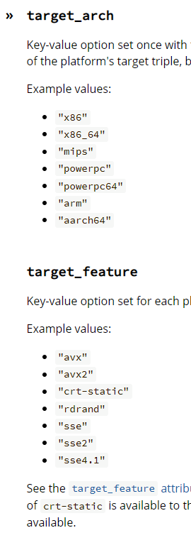 https://doc.rust-lang.org/reference/conditional-compilation.html#target_arch