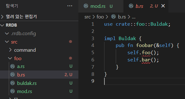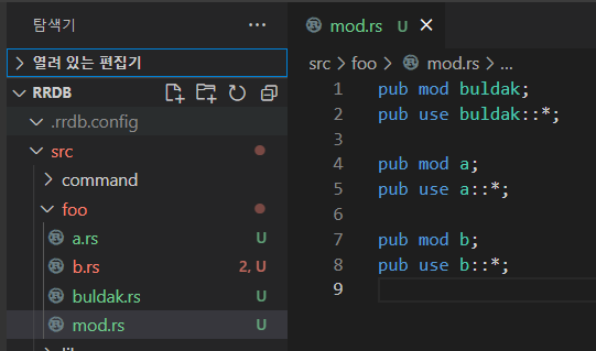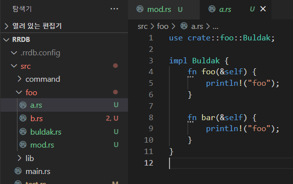 하나의 mod.rs에서 구조체 정의와 impl부를 다 import하게 해준다.