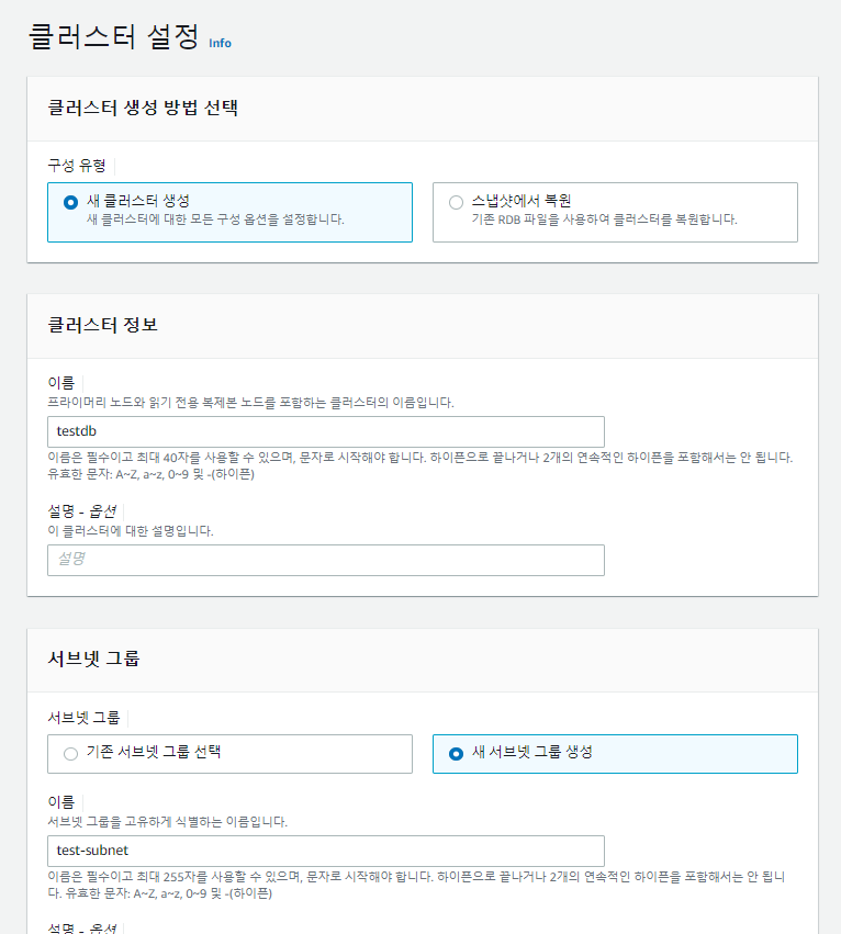 Elasticache와 별 차이는 없으나, 무조건 클러스터 형태로만 생성할 수 있다는게 좀 다르다.