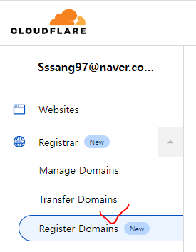 회원가입을 먼저 하고, Register Domains 탭으로 이동해서