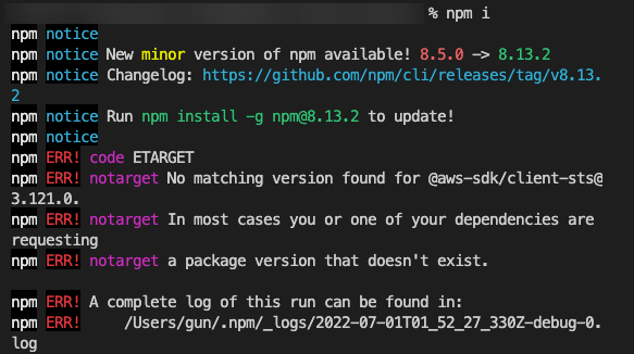 ์ด์ฉ์ผ์ธ์ง aws-sdk๊ฐ ๊ฐ์๊ธฐ ์ค์น๋์ง ์์ ๋ชจ๋ ์์คํ ์ด ํฐ์ ธ๋๊ฐ๊ธฐ ์์ํ๋ค.