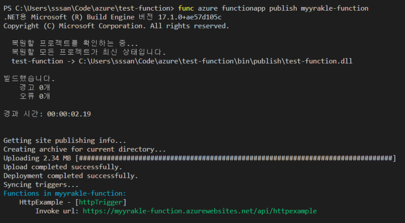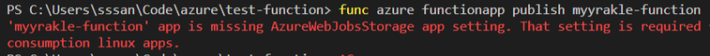 func azure functionapp publish ํจ์๋ช