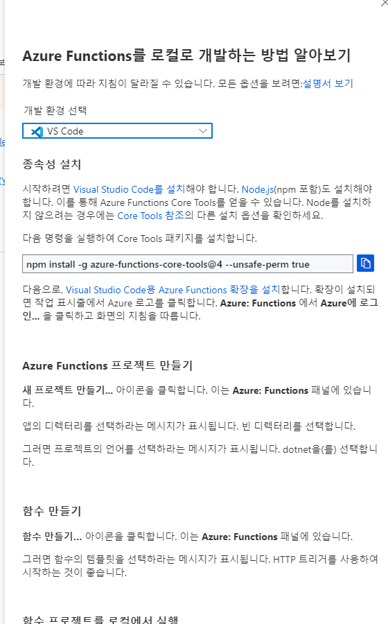 https://docs.microsoft.com/ko-kr/azure/azure-functions/functions-develop-vs-code?tabs=csharp