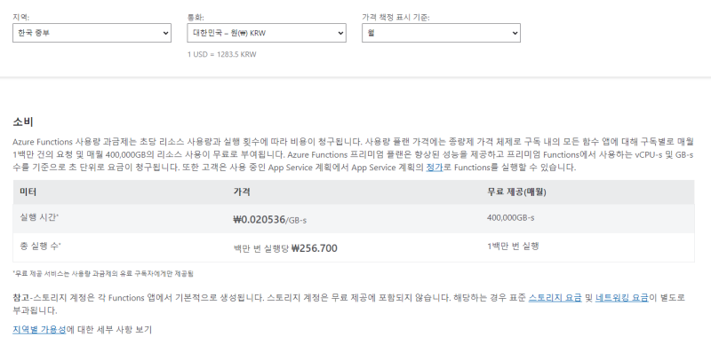 https://azure.microsoft.com/ko-kr/pricing/details/functions/