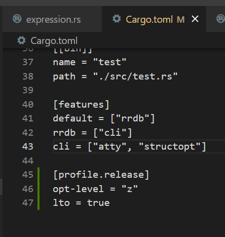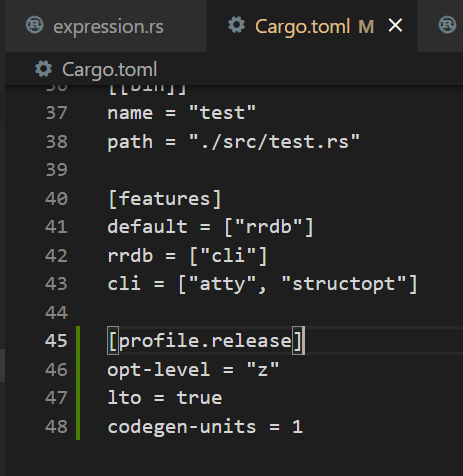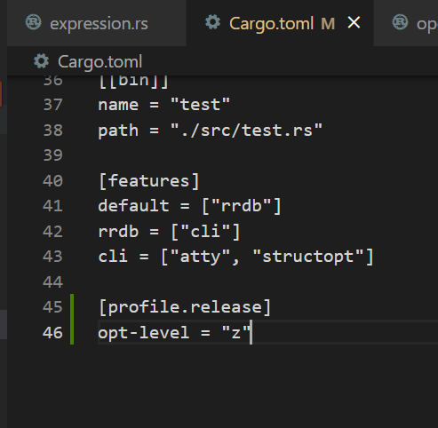 toml에 아래 설정값을 추가해서 빌드한다.