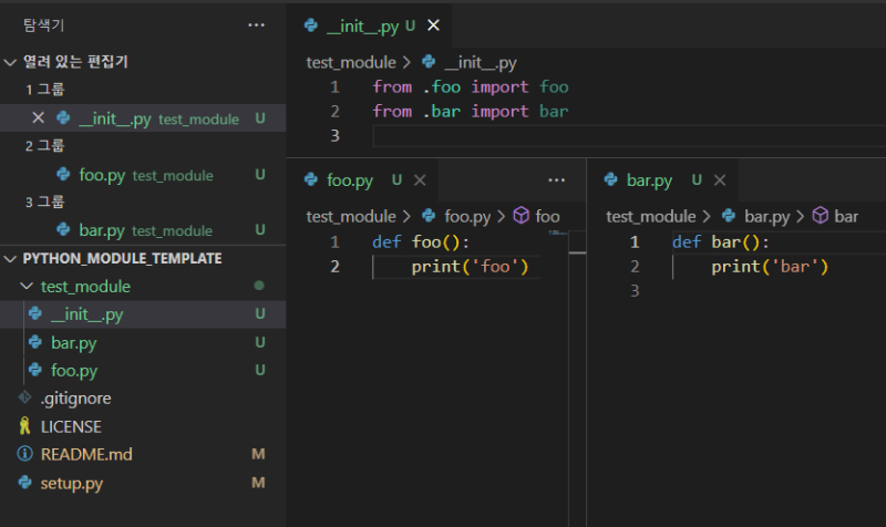 그다음에는 모듈 디렉터리를 작성하고, 내부에 init.py와 여기서 가져올 소스코드들을 작성하면 된다.