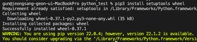 방금 작성한 setup.py를 다음과 같이 실행하면 된다.