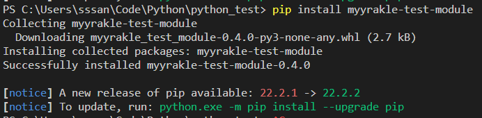 여기서 name="myyrakle_test_module"이 pip install할때 쓰일 이름이 된다.