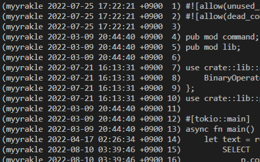 그럼 소스코드와 함께, 매 라인을 누가 언제 수정했는지 보여준다.