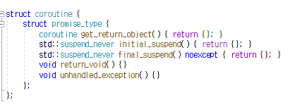 struct coroutine: std::coroutine_handle<promise>{