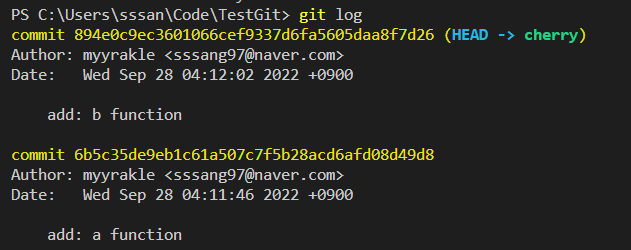 ๋ง์ฝ ์๋ณธ ๋ธ๋์น์ธ master๋ ๋ ๋๊ณ , cherry ๋ธ๋์น์์๋ง ์ปค๋ฐ์ ๋๊ฐ ์น๋ค๊ณ ๊ฐ์ ํ๊ฒ ๋ค.