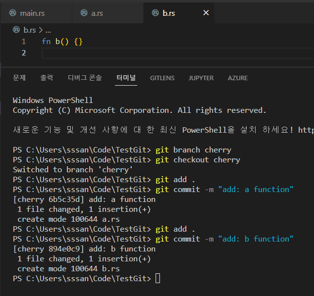 b.rs ํ์ผ์ ์์ฑํ๊ณ ์ปค๋ฐ.
