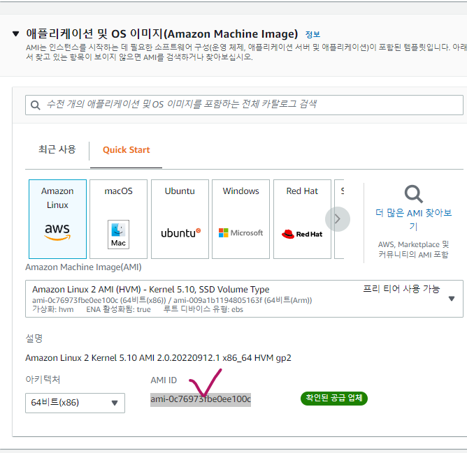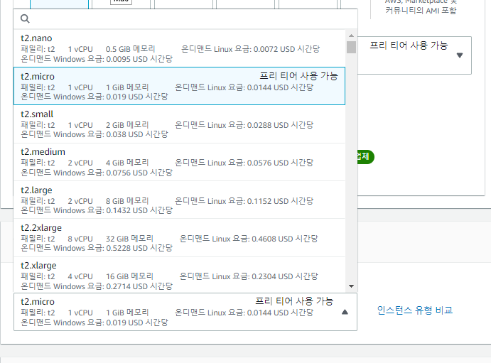 인스턴스 타입은 이거 그대로 골라서 박으면 된다.