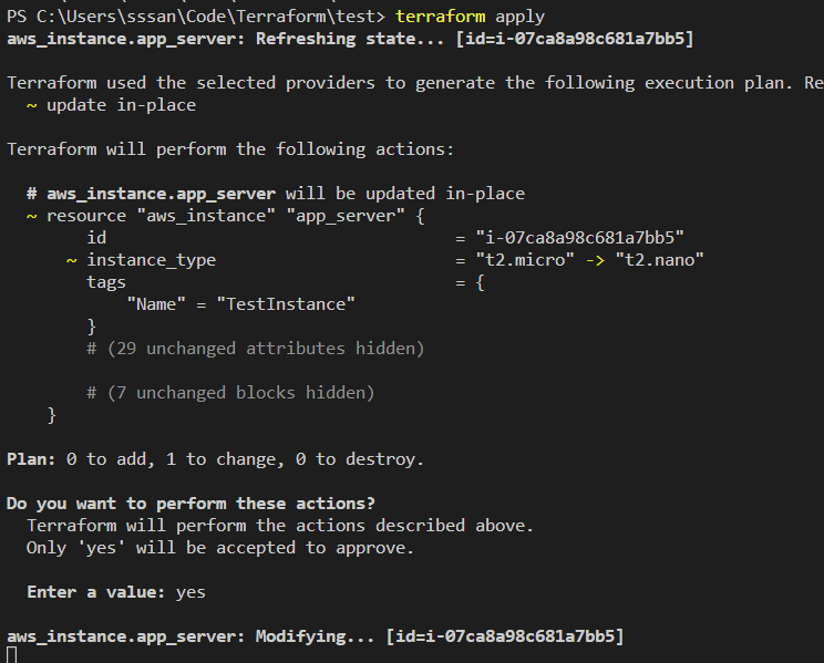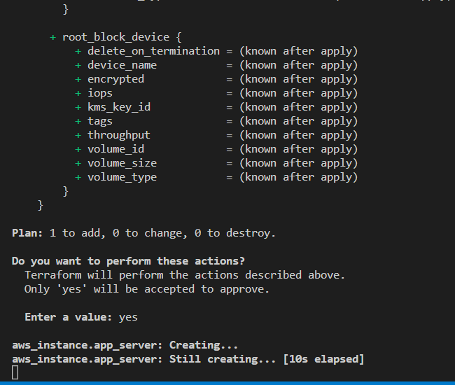 작성한 테라폼 리소스를 생성하려면 apply 명령을 사용하면 된다.