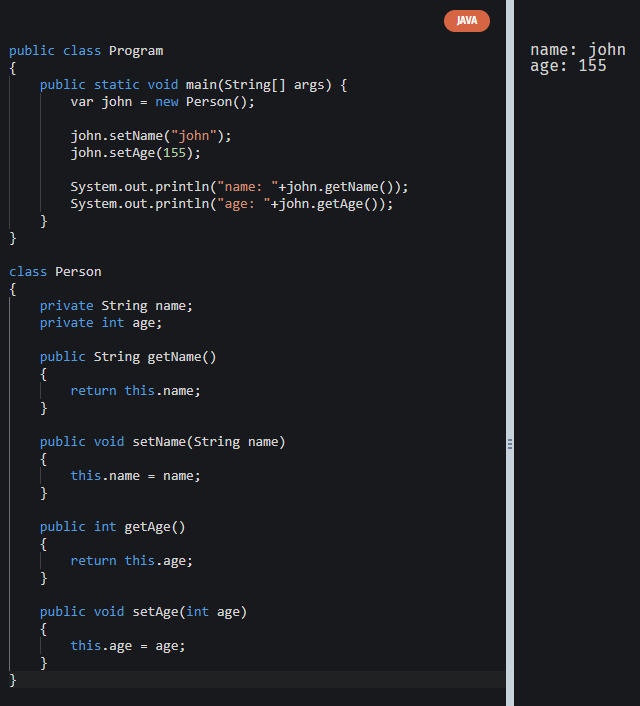 System.out.println("age: "+john.age());