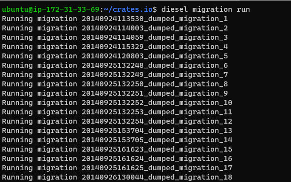그다음엔 crates에서 쓰는 orm인 디젤을 깔아준다.