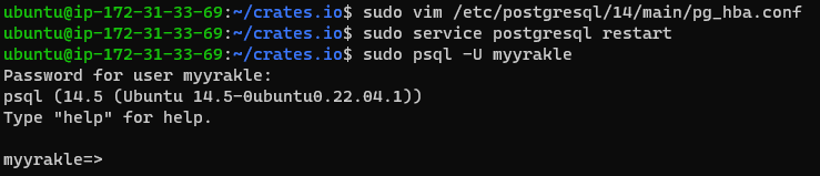 sudo vim /etc/postgresql/14/main/pg_hba.conf