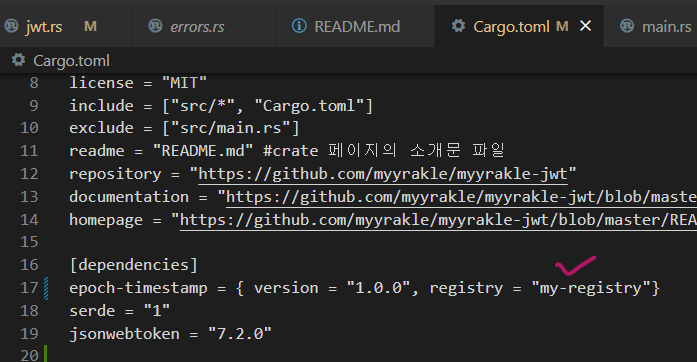 그래서 crates io에다가 체계적으로 크레이트를 쌓고 싶은데 비공개로 관리를 해야한다면, 직접 사설 서버를 구축해서 사용해야 한다.