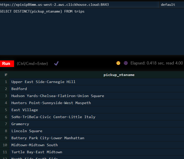 clickhouse는 친숙한 SQL 스타일의 쿼리 신택스를 제공한다.