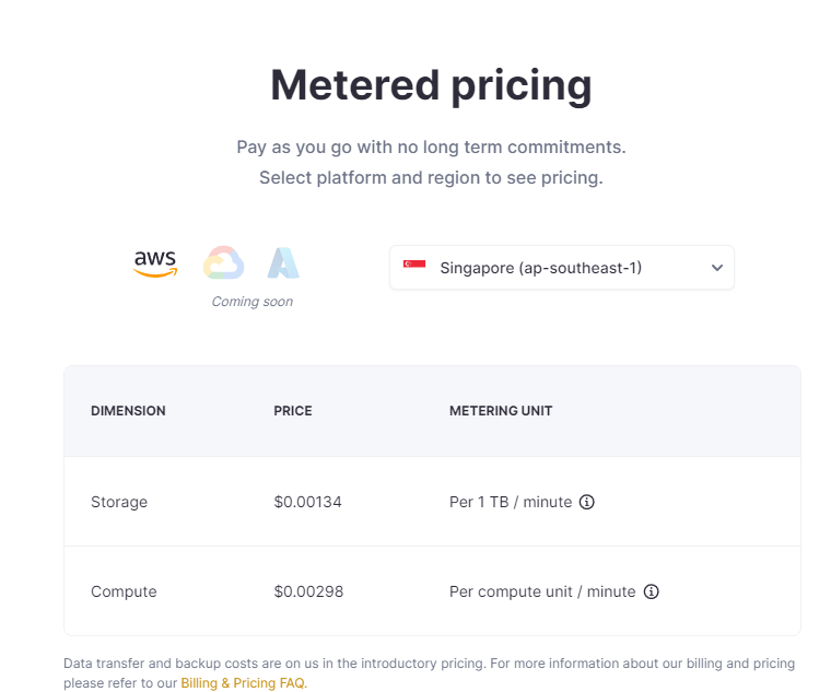 비용은 리전마다 다르고, 스토리지와 컴퓨팅 2가지 방식으로 뜯는다.